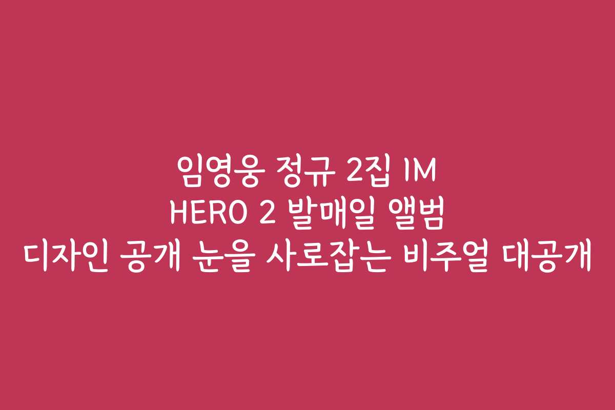 임영웅의 새로운 앨범, 정규 2집 IM HERO 2의 발매일이 드디어 확정되었습니다. 팬들은 이 앨범의 디자인과 비주얼을 기다려온 만큼, 그 기대가 커지고 있습니다. 이번 블로그 포스트에서는 정규 2집의 발매일과 함께 공개된 앨범 디자인을 살펴보며, 그 매력 포인트를 자세히 소개합니다.