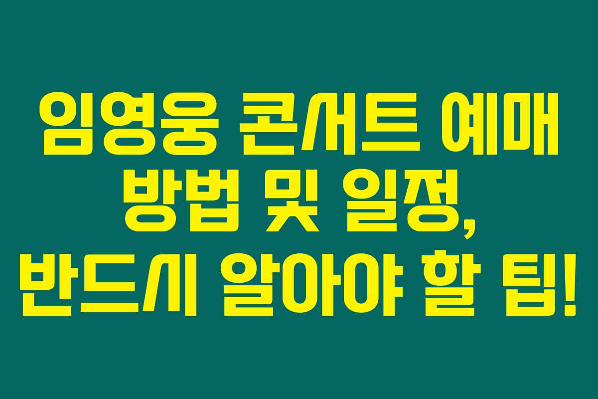 임영웅의 콘서트 예매 방법과 일정을 찾아 헤매고 계신가요? 좋은 소식이 있어요! 임영웅의 콘서트 예매가 드디어 시작됩니다. 팬이라면 절대 놓칠 수 없는 중요한 정보가 담겨 있으니 아래를 읽어보시면 필요한 모든 것을 확인할 수 있어요.