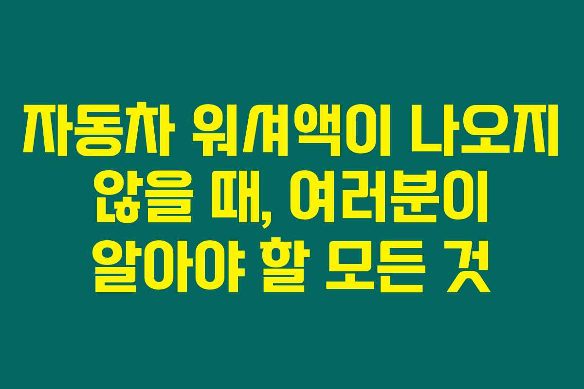 제가 직접 경험해본 결과로는, 자동차의 시야 확보는 안전한 운전의 필수 요소입니다. 특히 비 오는 날이나 먼지가 많은 환경에서는 각별히 더 느껴지죠. 그런 상황에서 자동차 워셔액이 나오지 않는다면 정말 난감할 수 있습니다. 아래를 읽어보시면 자동차 워셔액이 나오지 않는 이유, 해결 방법, 그리고 워셔액 넣는 방법에 대해 자세히 안내해 드립니다.