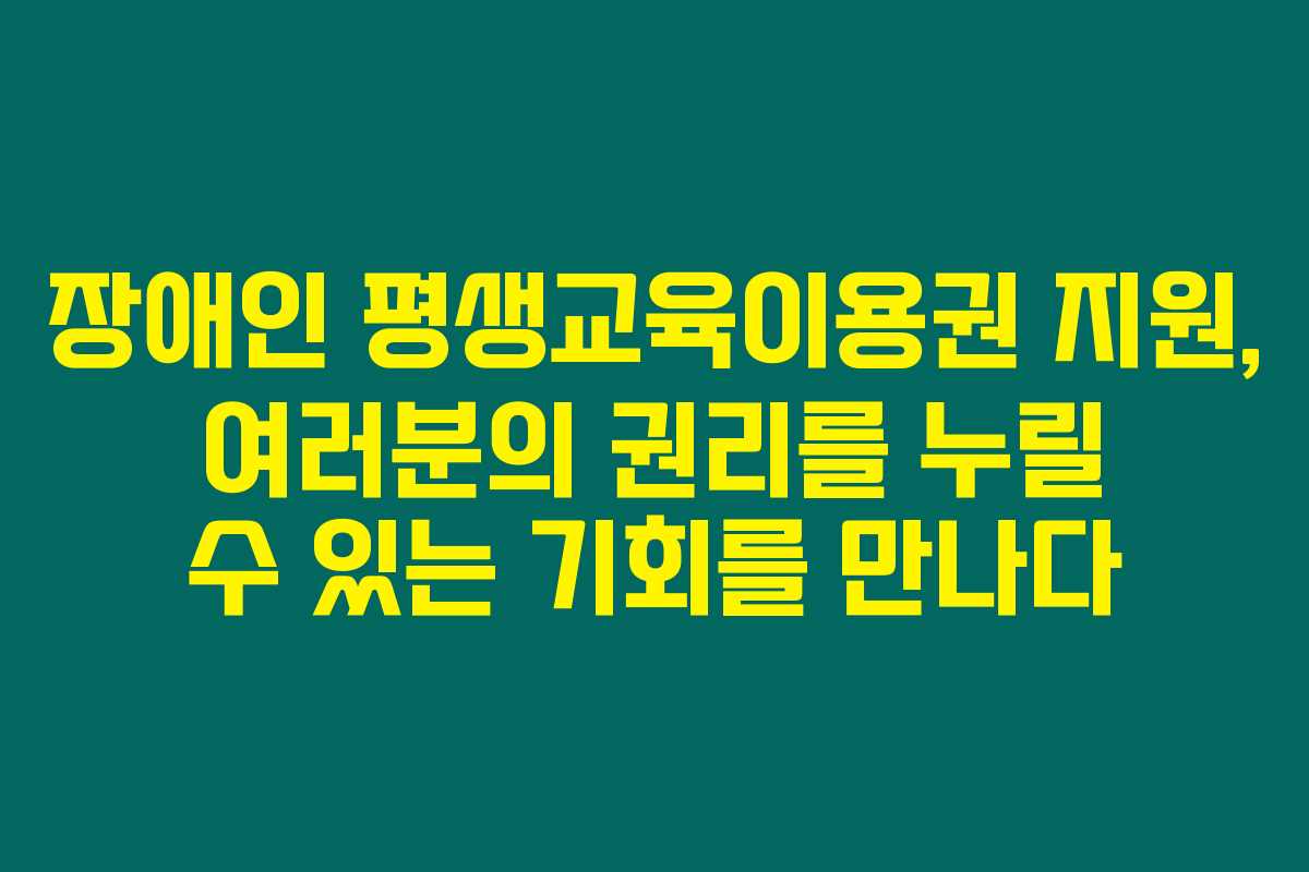 장애인 평생교육이용권은 장애인들이 삶의 질을 향상시키기 위한 평생학습 기회를 제공하는 제도입니다. 이 제도를 통해 장애인들은 필수 서비스를 이용하여 다양한 교육 프로그램에 참여할 수 있습니다.