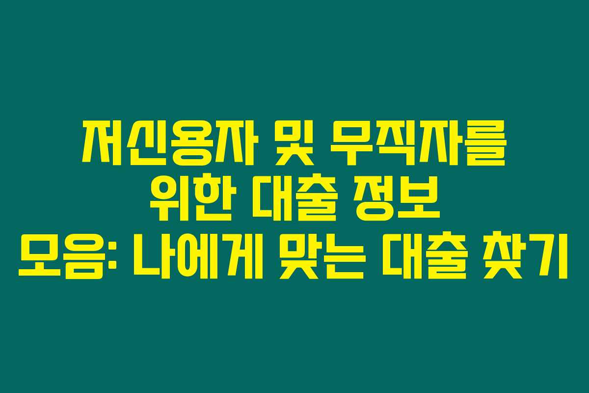 제가 직접 체크해본 바로는, 저신용자나 무직자, 직장인들이 다양한 상황에서 필요한 대출 상품들이 많이 있습니다. 이러한 대출들은 정상 근로소득이 없거나 신용점수가 낮은 경우에도 도움을 줄 수 있다는 사실은 매우 유용하죠. 아래를 읽어보시면, 대출 신청 조건 및 방법에 대한 자세한 정보가 정리되어 있어 여러분의 선택에 큰 도움이 될 것입니다.