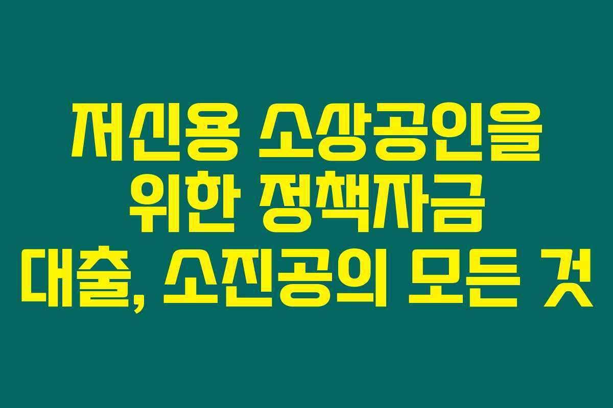 제가 직접 경험해본 결과로는, 소상공인들이 저신용 상태에서 경제적 어려움을 겪고 있는 경우가 많아요. 그래서 오늘은 소진공대출, 특히 저신용 소상공인 대출에 대해 집중적으로 알아보려고 해요. 또한 정책자금 대출의 중요성과 조건을 설명드리니, 소상공인 여러분은 아래를 읽어보시면 많은 도움이 될 거랍니다.