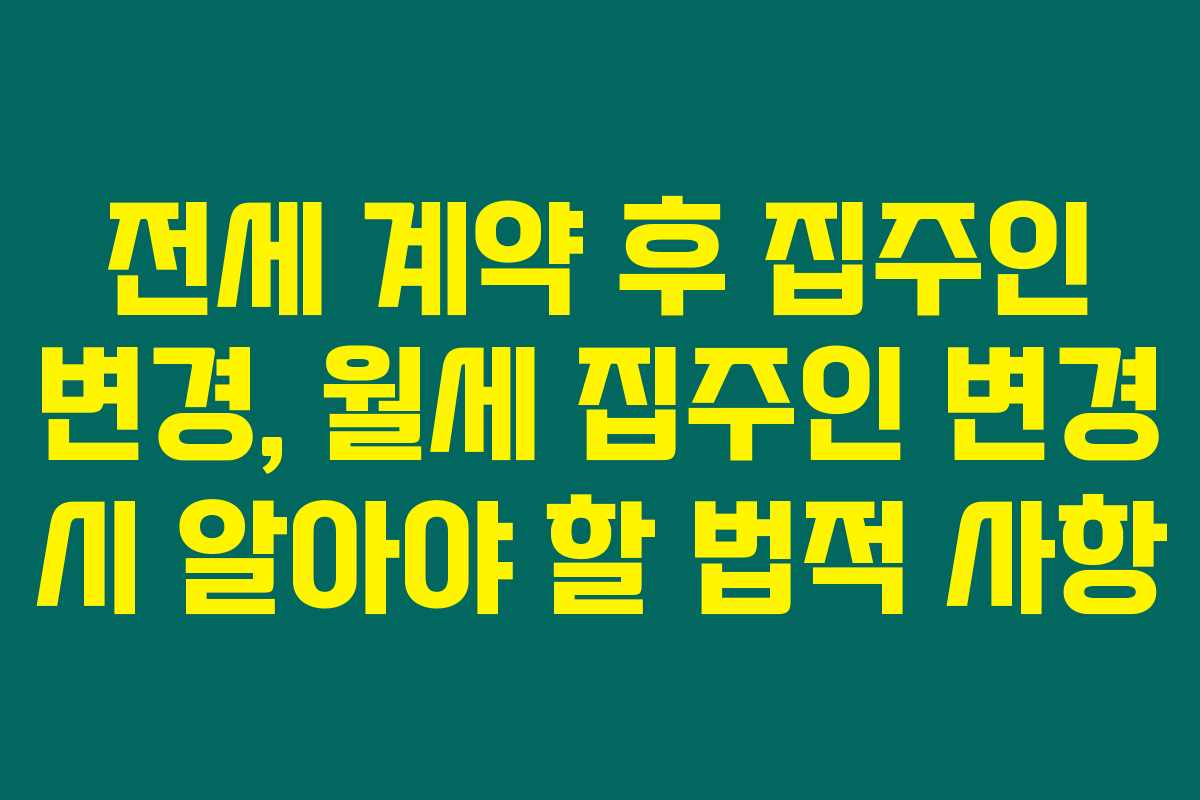 집주인이 변경되는 경우, 세입자의 권리는 보호받는다는 사실을 알고 계신가요? 전세 계약 후 집주인 변경 및 월세 집주인 변경 상황에서 세입자의 대처 방안과 법적 권리를 잘 알고 있으면, 보다 안정적인 주거 환경을 유지할 수 있습니다. 다양한 상황에 대처할 수 있는 방법을 이해한 후, 내 집처럼 안정감을 느끼며 살길 바랍니다.