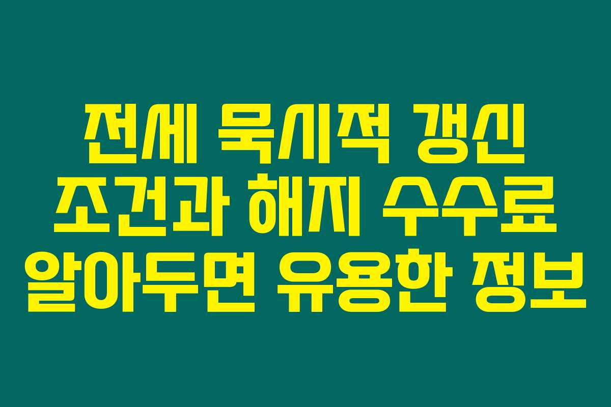 짧게 말씀드리면, 전세 묵시적 갱신은 특별한 의사표시 없이도 계약이 연장되는 것이며, 그 조건과 해지 시 수수료에 대한 이해는 매우 중요해요. 최근 부동산 시장이 불안정하니 더욱 조심해야 한답니다.