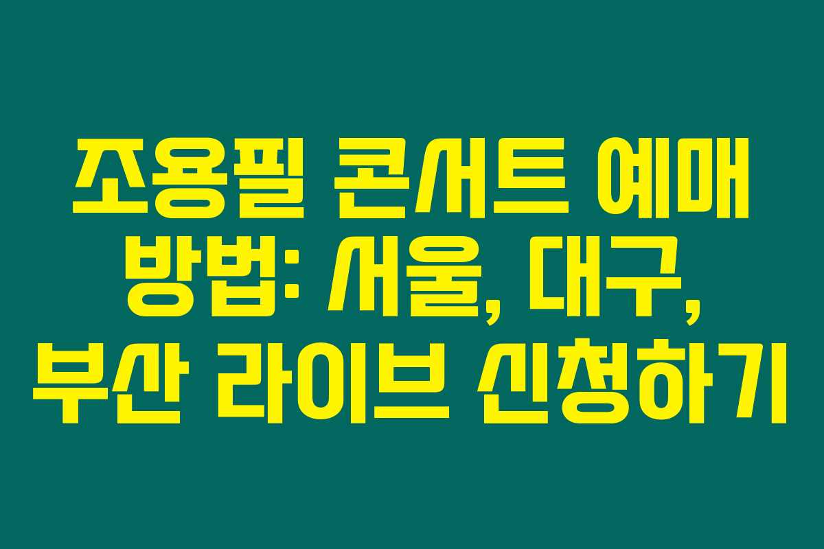 조용필의 콘서트 일정이 드디어 공개되었습니다. 올해의 마지막을 장식할 이 특별한 공연은 서울, 대구, 부산에서 실시되며, 대한민국 최고의 가수인 조용필의 열정적인 라이브를 직접 느낄 수 있는 기회랍니다. 아래를 읽어보시면 예매 방법과 일정에 대한 자세한 정보가 담겨 있으니, 놓치지 마세요!