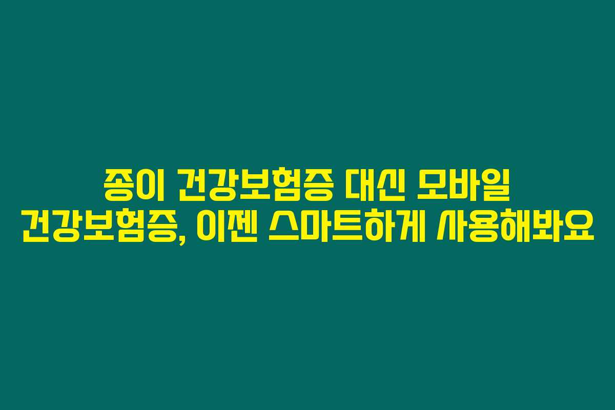모바일 건강보험증은 종이 건강보험증을 대체하는 디지털 건강보험증입니다. 이 서비스는 국민이 더욱 편리하게 건강보험을 이용할 수 있도록 제공되는 스마트한 도구로, 특히 모바일 기기를 선호하는 분들께 강력 추천할게요.