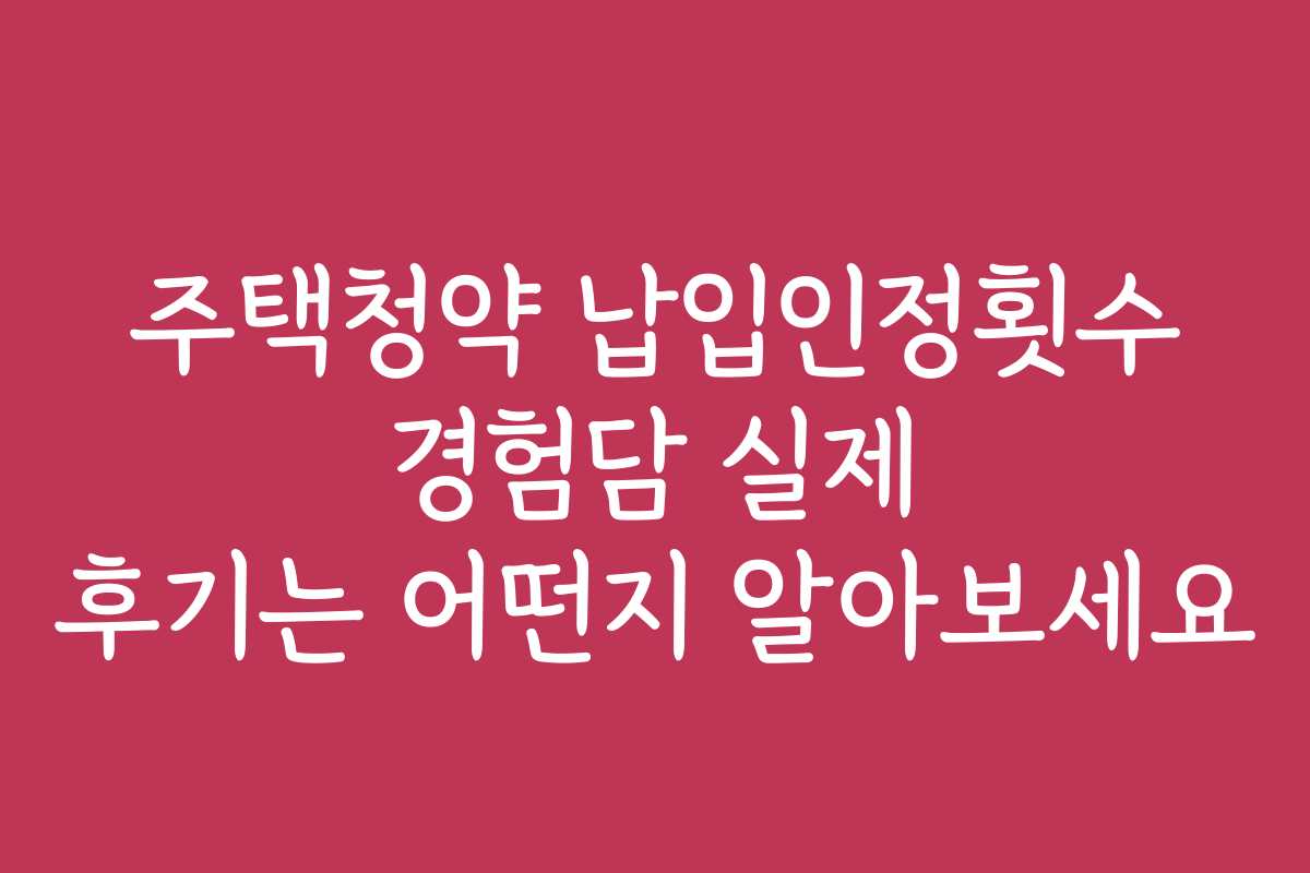 주택청약 납입인정횟수, 실제 경험담과 후기는 어떤지 알아보세요
