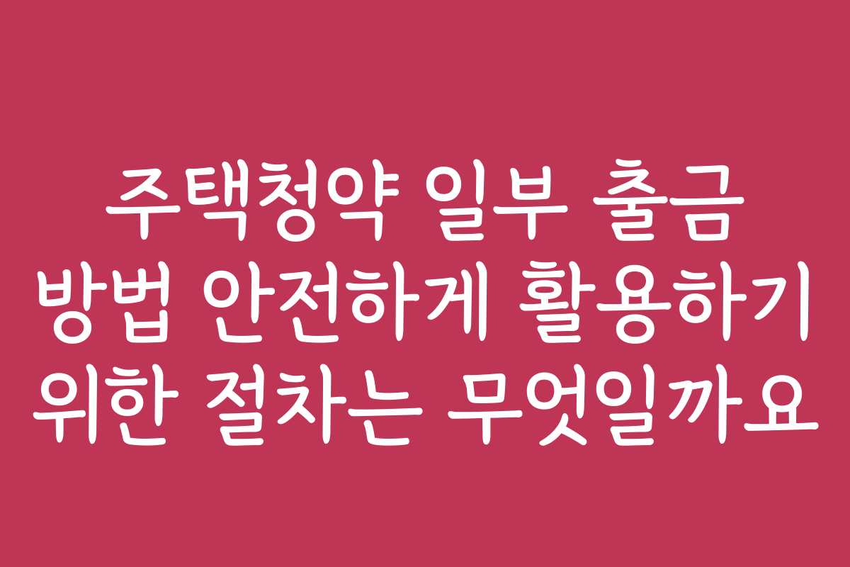 주택청약 출금을 안전하게 활용하는 방법은 무엇일까요?