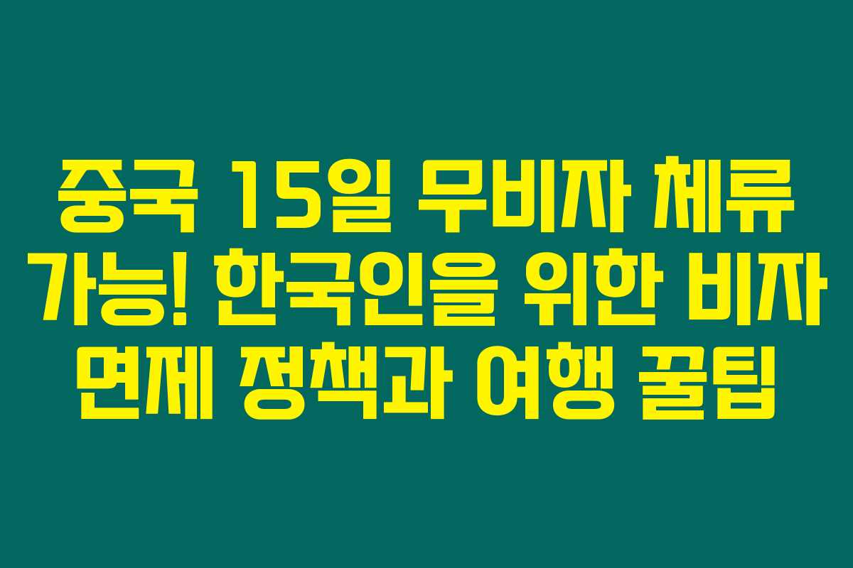 중국의 비자 면제 정책을 활용해 더욱 쉽게 여행할 수 있는 기회를 놓치지 마세요. 여행 준비를 철저히 하고 중국 문화와 아름다운 명소들을 만끽하길 바랍니다.