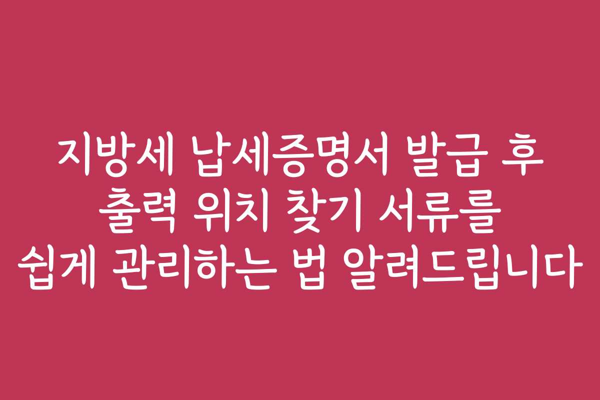 키워드: 지방세 납세증명서, 출력 위치, 서류 관리, 발급 방법, 서류 분실, 앱 추천, 자동 알림, 디지털 저장, 세무 서류, 문제 해결, FAQ