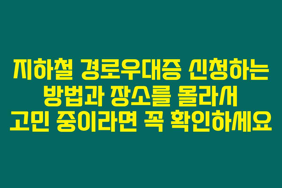 지하철 경로우대증은 정말 유용한 카드예요. 이 혜택을 놓치지 않고 활용하시길 바라요. 신청이 번거롭지 않으니 한 번 도전해보세요!