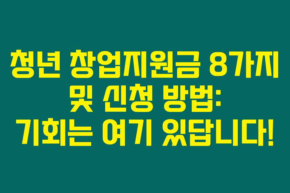 제가 알아본 바로는, 청년 창업자들을 위한 청년 창업지원금은 실제로 많은 기회를 제공합니다. 2024년 창업 관련 예산이 약 3조 7121억 원에 이르며, 이를 통해 많은 청년들이 창업의 꿈을 실현할 수 있도록 지원하고 있습니다. 아래를 읽어보시면, 청년 창업지원금 종류와 각각의 신청 자격, 지원 내용, 조건 등에 대한 상세 정보를 알아보실 수 있습니다.