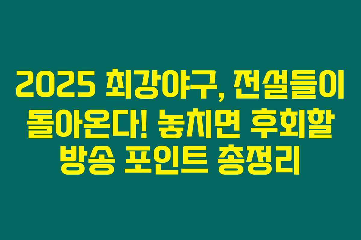 ✍ 마무리: 최강야구 2025에서 펼쳐질 전설들의 한판 승부!
