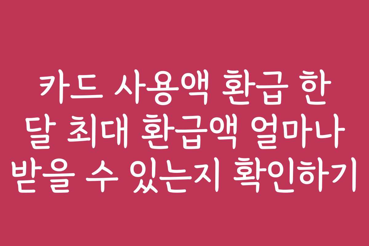 카드 사용액 환급의 한 달 최대 환급액은 소비자의 사용액에 따라 달라지며, 카드 상품의 특성에 따라 변동됩니다. 기본적으로 많은 카드 상품에서 최대 환급액을 설정하고 있는 경우가 많아서 각 카드의 정책을 참고할 필요가 있습니다.