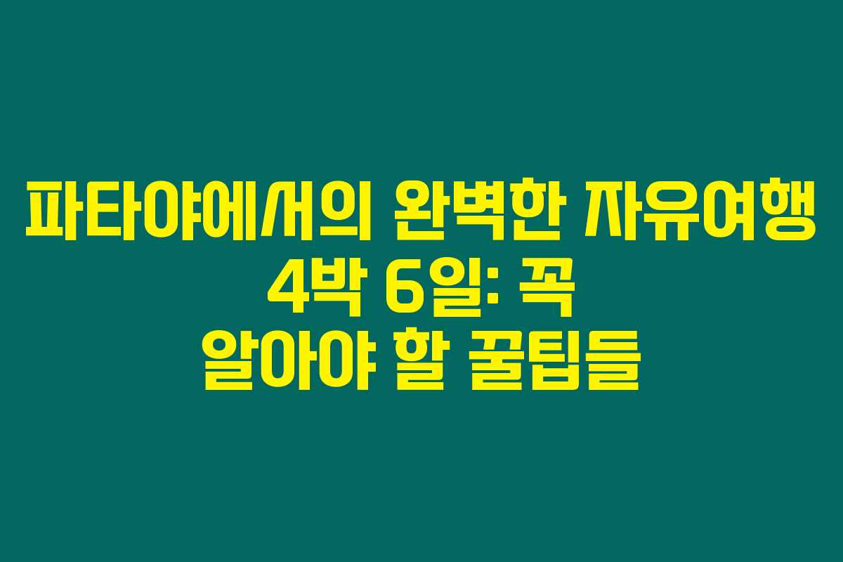 제가 직접 경험해본 결과로는 파타야는 태국 동부의 매력적인 해양 리조트로, 관광 명소, 훌륭한 숙소, 다양한 교통수단이 잘 결합되어 있습니다. 아래를 읽어보시면 파타야 자유여행을 더욱 즐겁고 알차게 보낼 수 있는 유용한 정보와 추천이 가득합니다.