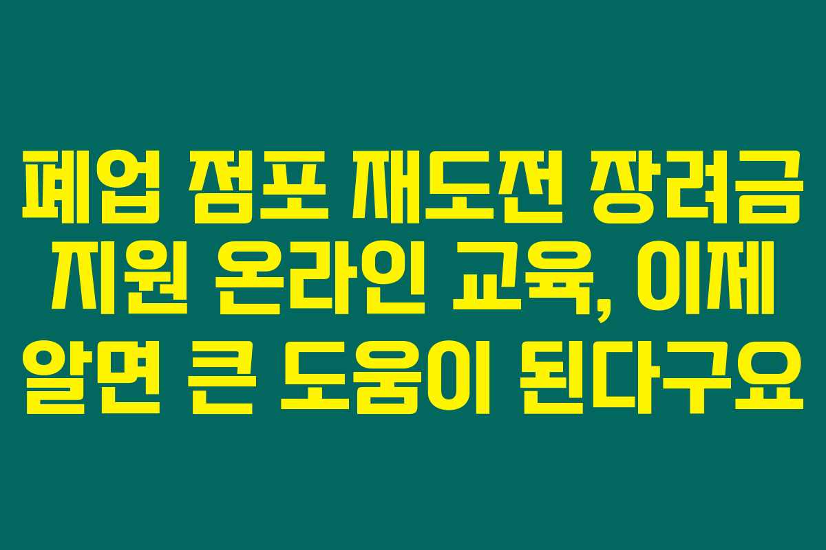 최근 폐업으로 어려움을 겪고 있는 소상공인 분들을 위해 지원되는 폐업 점포 재도전 장려금 지원 온라인 교육이 주목받고 있어요. 혹시 당신도 폐업으로 힘들어하고 있나요? 그렇다면 아래를 읽어보시면 이 교육이 어떻게 큰 도움이 될 수 있는지 알 수 있어요.