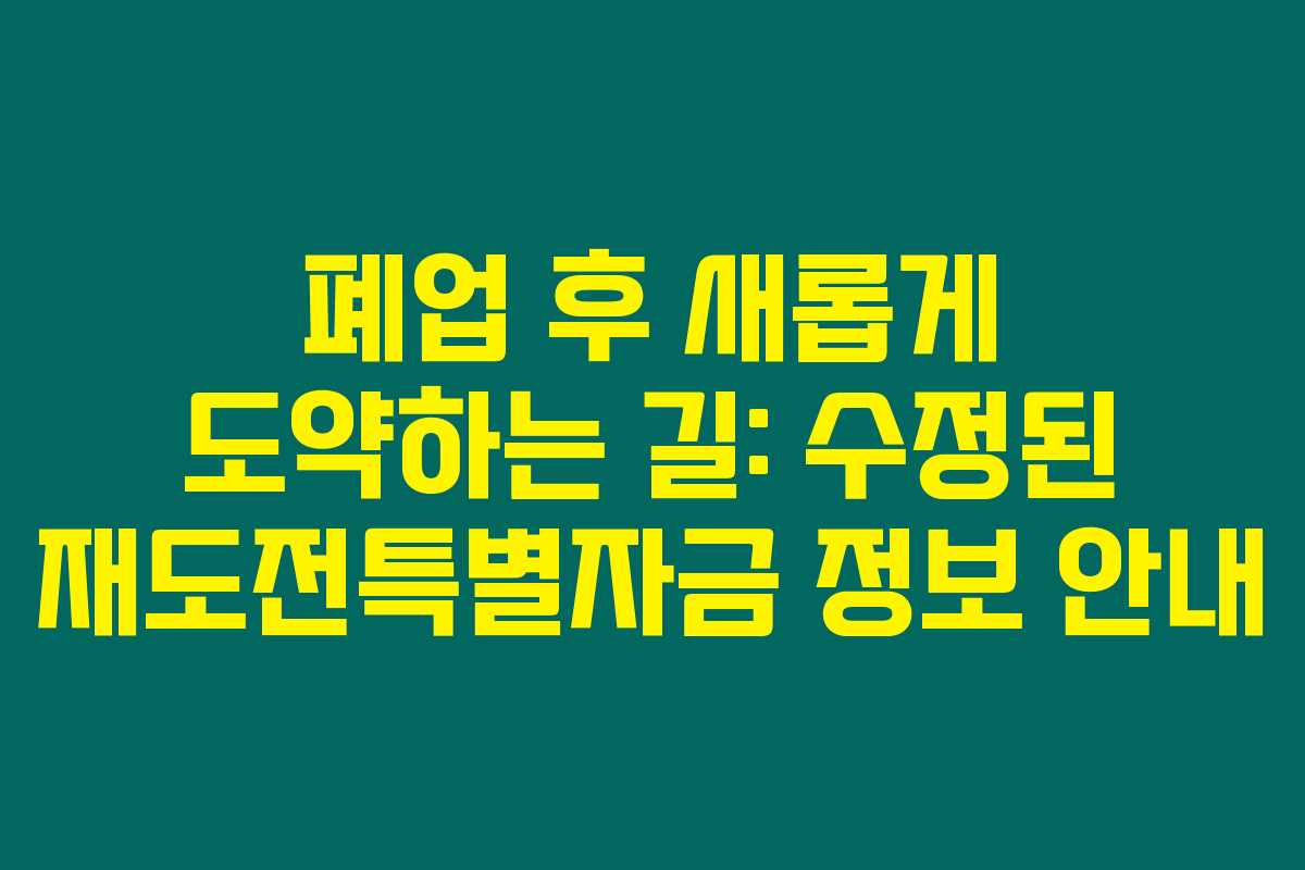재도전특별자금은 폐업을 경험한 소상공인이 다시 일어설 수 있도록 돕는 소중한 정책입니다. 이 자금을 통해 새로운 시작을 할 수 있는 기회를 잡는다면, 많은 사람들이 장기적인 성공을 이룰 수 있을 것입니다. 앞으로도 소상공인들이 경제적으로 안정적으로 성장할 수 있도록 다양한 정책들이 이어졌으면 좋겠네요.