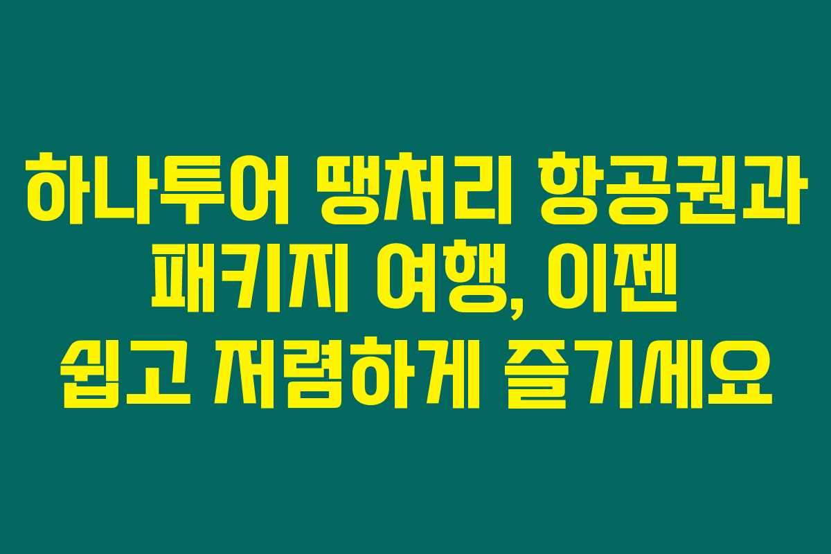 하나투어 땡처리 항공권과 패키지 여행을 통해 저렴하고 즐거운 여행을 계획해보세요. 좋은 가격에 즐거운 여행, 그 참맛을 느껴보시길 바라요!