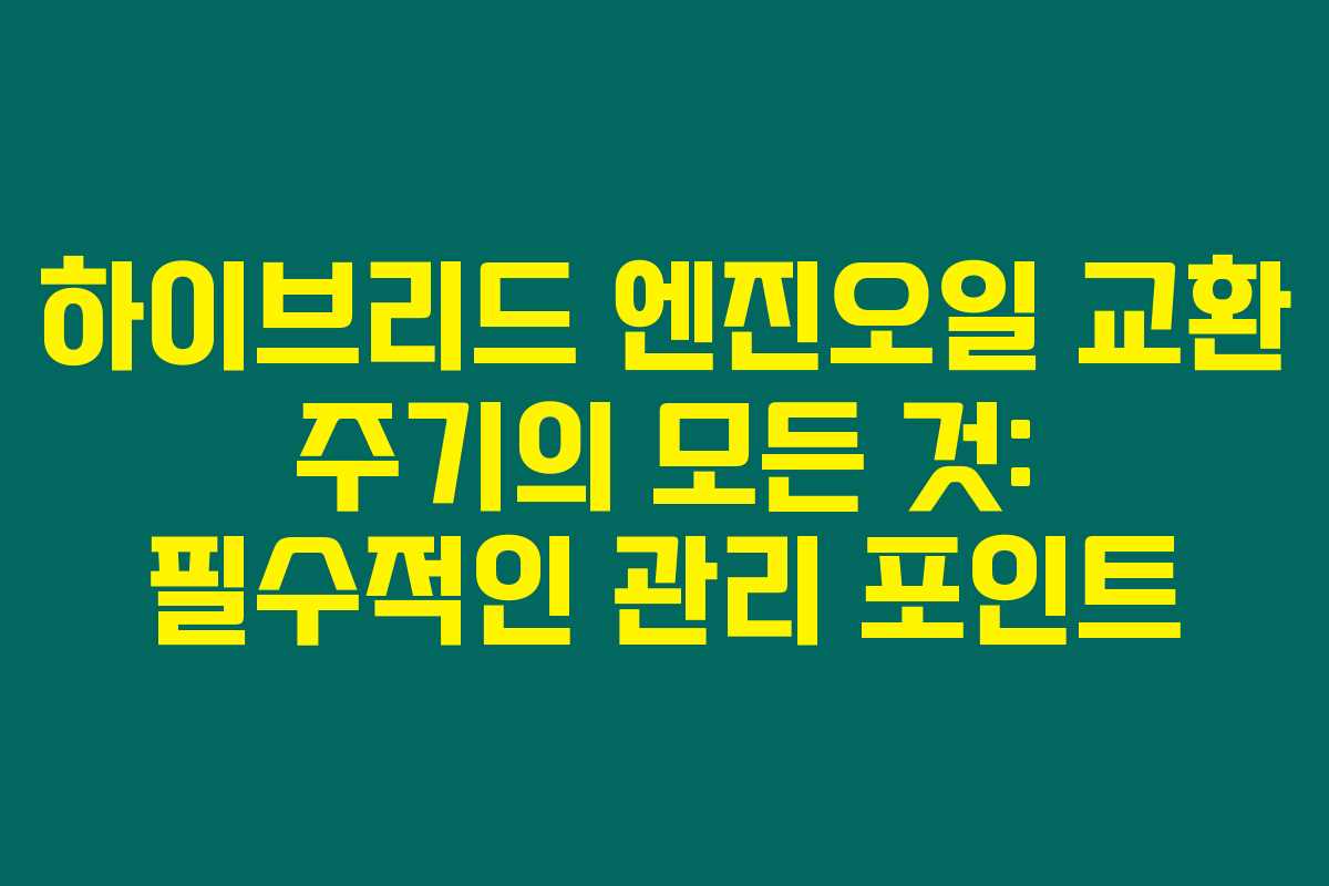 - 하이브리드 엔진오일 교환 주기 차이점과 관리 방법