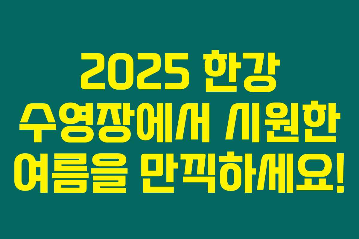 2025년 여름, 서울의 한강 수영장에서 시원함과 즐거움을 만끽하세요. 도심 속에서 특별한 물놀이를 경험하고 싶다면, 한강 수영장은 훌륭한 선택이 될 거예요. 계획을 세워보시고, 멋진 경험을 만들어보세요!