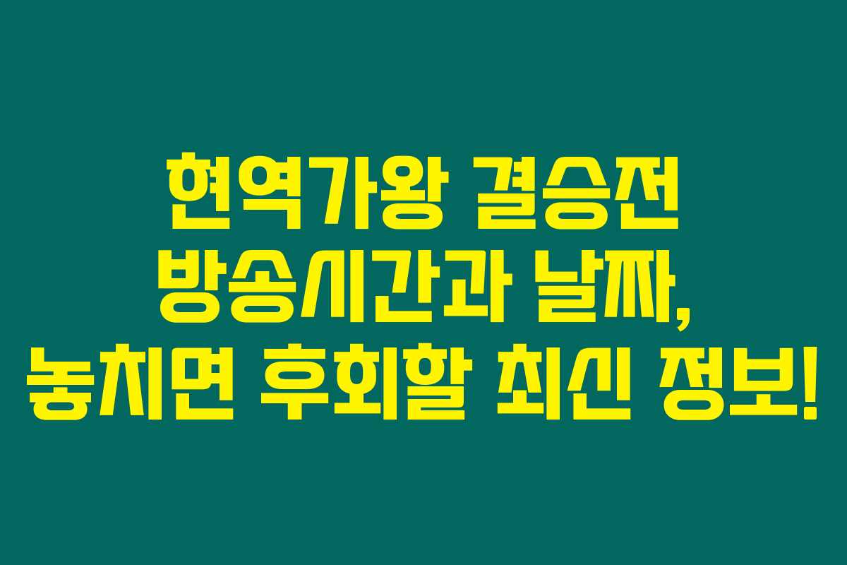 현역가왕 결승전 방송을 기다리는 분들이에요? 그럼 정말 이 내용을 꼭 확인해야 해요! 이 포스트에서는 이번 2024 트롯한일전에서 대한민국을 대표할 TOP7을 뽑는 현역가왕 결승전 방송시간과 알아두면 유용한 정보를 간단하게 정리했답니다. 방송을 놓치면 후회할 수 있으니 자세히 읽어보세요!