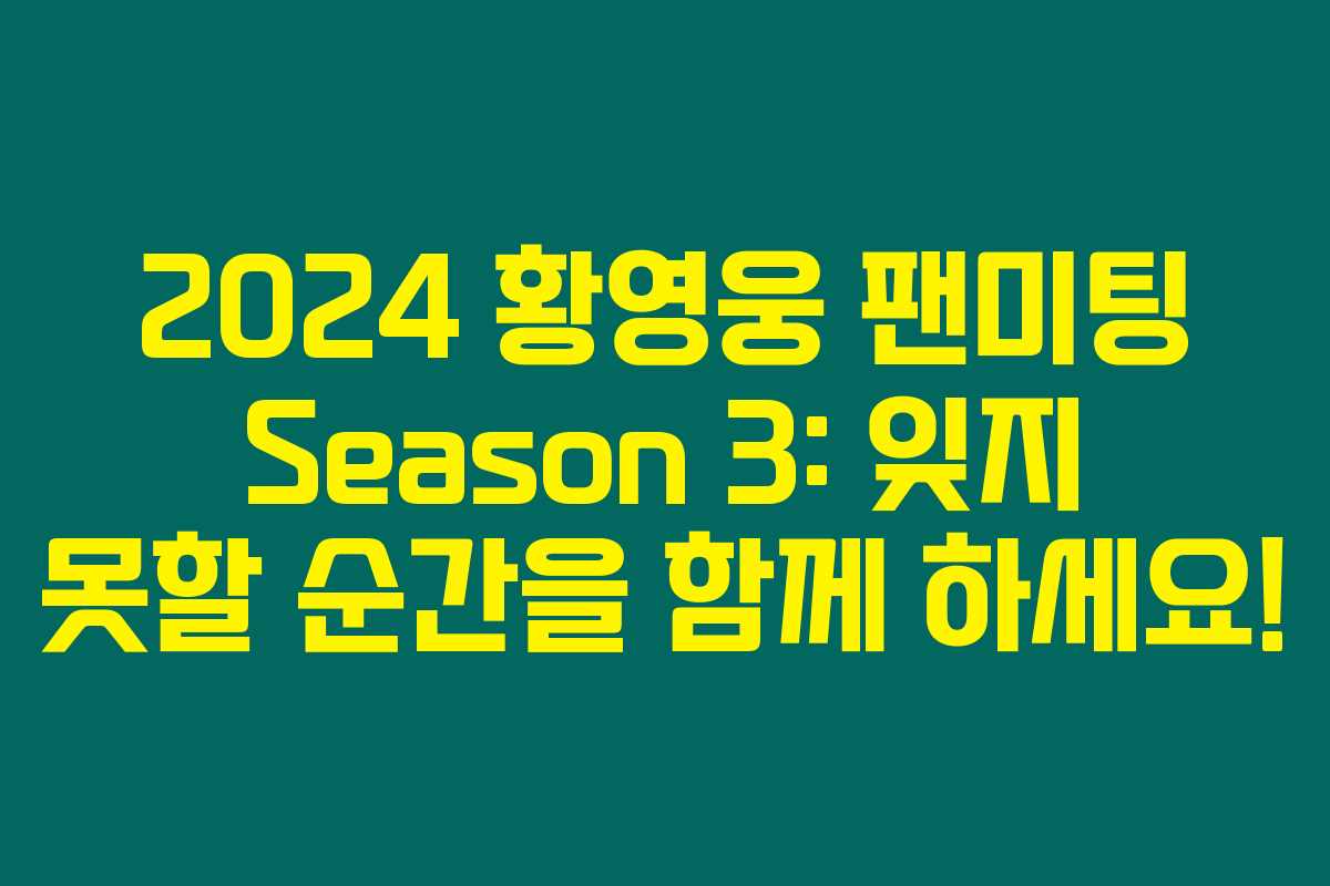이번 팬미팅은 정말 특별한 순간이 될 것입니다. 2024 황영웅 팬미팅 Season 3: 세번째 팬레터에서 황영웅의 매력을 직접 느껴보세요. 팬 분들의 많은 참여 부탁드립니다! 🎉