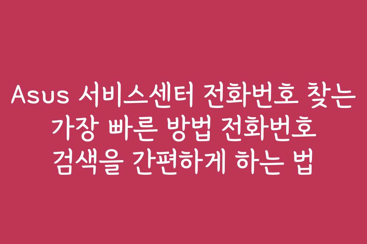 Asus 서비스센터 전화번호 찾는 가장 빠른 방법 전화번호 검색을 간편하게 하는 법