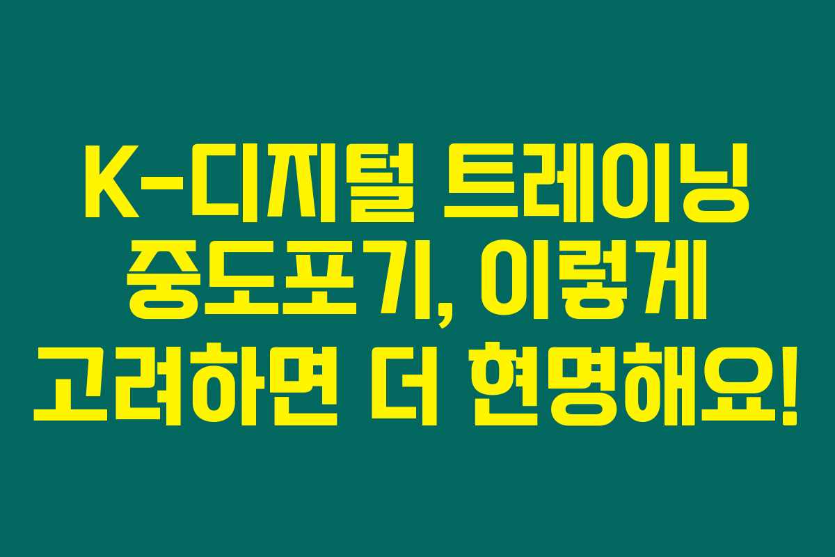 제가 직접 경험해본 결과로는, K-디지털 트레이닝(KDT)은 다양한 전공자들이 협업하며 스킬을 향상시키는 좋은 기회지만, 중도포기 시 몇 가지 점을 꼭 고려해야 해요. 아래를 읽어보시면 중도 포기의 주의사항과 수강 중 필요한 정보들을 잘 파악하실 수 있을 거에요.