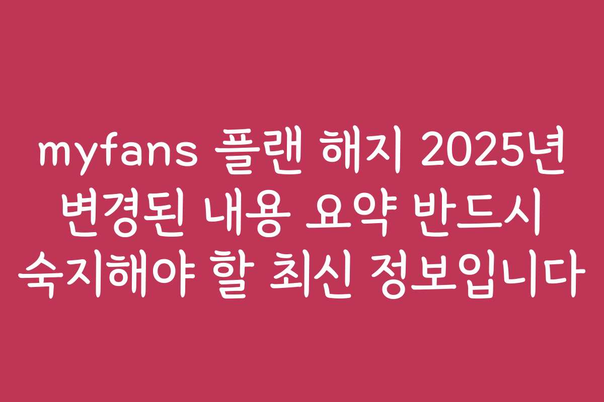 myfans 플랜 해지 2025년 변경된 내용 요약 반드시 숙지해야 할 최신 정보입니다