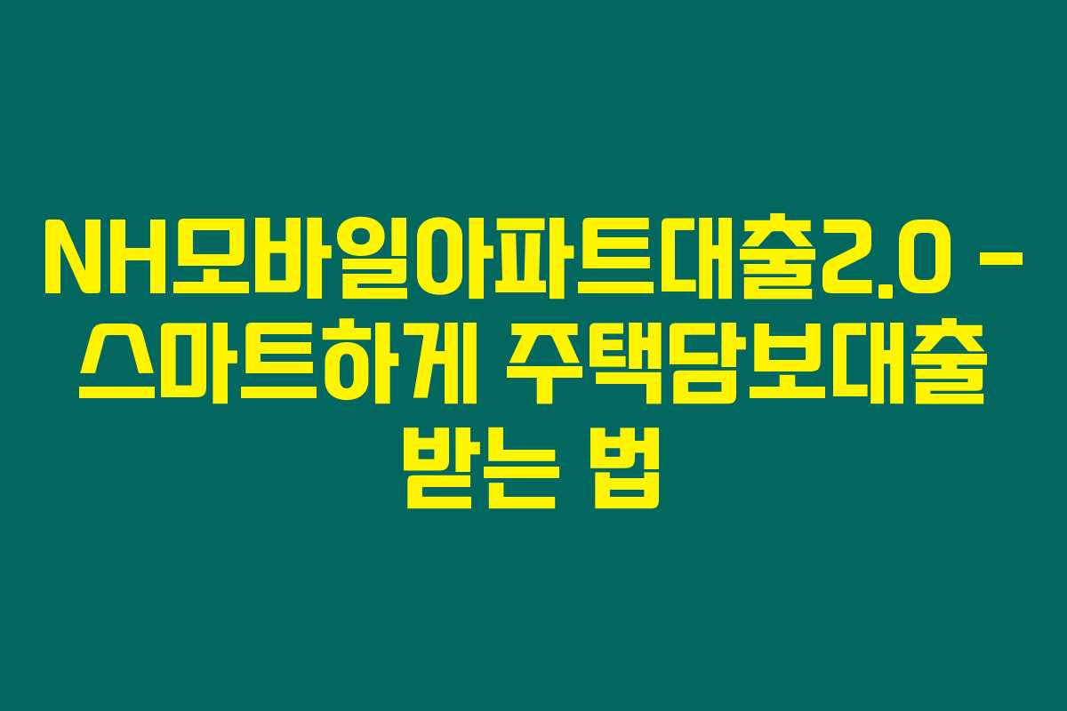 - 1. NH모바일아파트대출2.0의 특장점은 무엇인가요?
